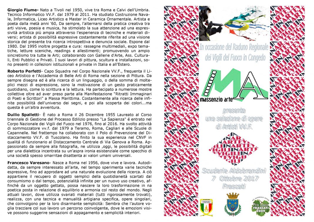 in occasione del raduno regionale dei Vigili del Fuoco a riposo, la Massenzio Arte presenta una collettiva di quattro artisti appartenenti al Corpo Nazionale.