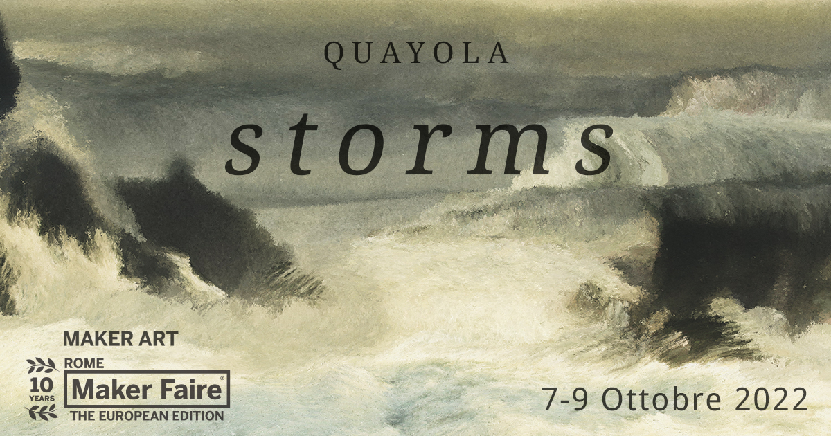MakerArt, la sezione speciale di Maker Faire Rome – The European Edition 2022, curata da Valentino Catricalà, che unisce il mondo dell’innovazione con quello degli artisti, presenta per la prima volta a Roma STORMS di QUAYOLA.