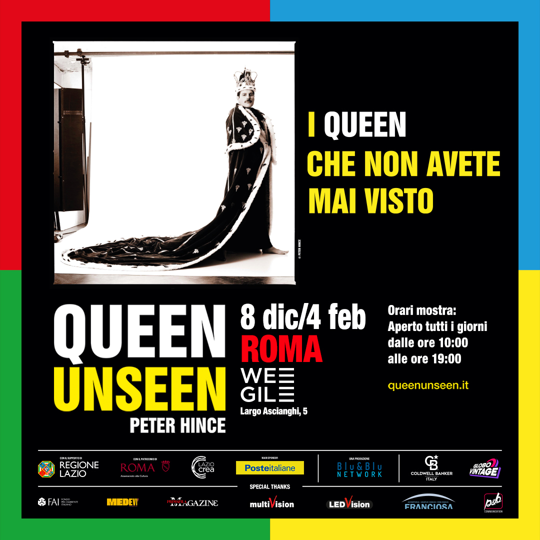Fans e appassionati già in fermento per l’arrivo al WeGil di Roma, hub culturale della Regione Lazio a Trastevere, del tour europeo della mostra – evento “QUEEN UNSEEN - Peter Hince”, un vero e proprio viaggio esperienziale nel mondo della celeberrima band da vivere attraverso le immagini inedite fermate nel tempo da chi i QUEEN li ha conosciuti davvero bene, vivendoci in simbiosi per oltre dieci anni.