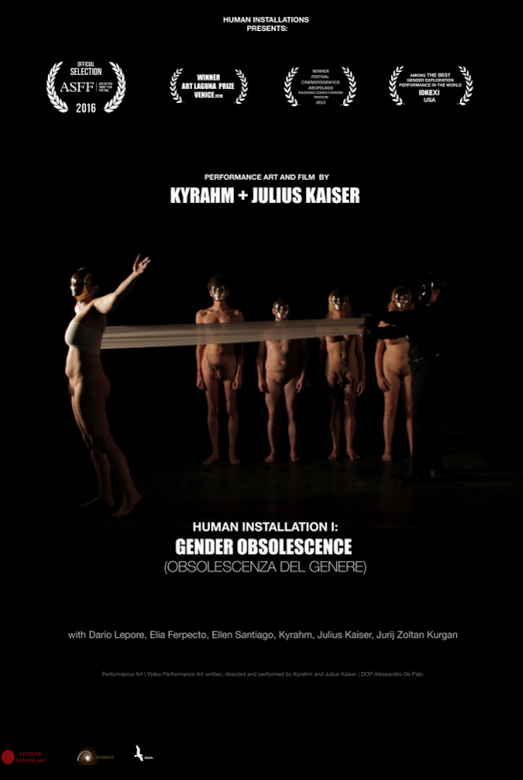 Kyrahm + Julius Kaiser sono una coppia di artisti italiani che vive a Roma, con esperienza individuale nei campi dell'arte visiva e performativa, della video arte, del cinema e dell'attivismo LGTB. Dal loro incontro è nato il progetto Human Installations, una ricerca che comprende arte contemporanea, live art e teatro d'avanguardia. In un dialogo costante con il cinema, realizzano opere di videoarte, documentari e film. Il loro interesse risiede nella funzione sociale dell'artista, nelle dinamiche esistenziali, nel ruolo dell'identità e nella sperimentazione lungo i limiti mentali e fisici e i ruoli di genere.