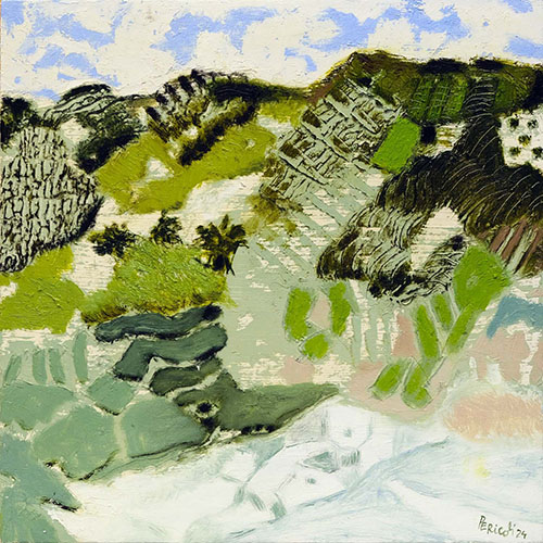 Il tema del paesaggio, che Tullio Pericoli ha affrontato fin dagli esordi, è tornato da alcuni anni al centro della sua opera, restituendo nuova vita al rapporto – mai interrotto – con il paese natale, in creazioni poetiche, sempre in bilico tra la sensazione del sogno e il sapore della terra. Che si tratti di colline morbide, di borghi visti dall’alto, di vallate e boschi carichi di pathos, al centro della riflessione c’è sempre il paesaggio, metafora dell’intera ricerca espressiva del pittore. Sono le “parti senza un tutto” del territorio marchigiano a dar forma alla sua pittura, in continua evoluzione, soggetta a imprevedibili variazioni. Come ha scritto Salvatore Settis, “costruiti mutando il punto di vista ma non lo spirito sperimentale, questi dipinti, se presi tutti insieme, acquistano, anche senza volerlo, un marcato carattere inventariale. Sono il repertorio, il registro, il lessico di un linguaggio: la lingua madre di Tullio Pericoli, delle sue Marche. E, per sineddoche, della nostra Italia”.
