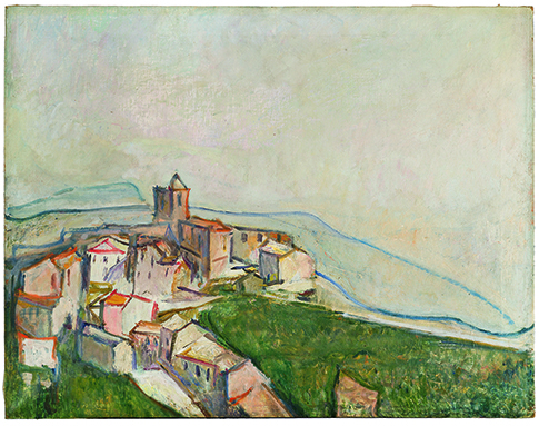 Nei dipinti degli anni Venti il paesaggio è uno dei generi più frequenti: le sinuose colline fermane, le pezzature agricole sovrastate dall’azzurro del cielo, la pura geometria delle case coloniche sono rese attraverso un’elaborazione interiore e una resa pittorica influenzata della lezione di Cézanne, Van Gogh, Matisse. Negli anni Trenta la levità che già era emersa nei paesaggi del decennio precedente, la linea obliqua delle colline, l’essenzialità cromatica vengono sublimate in forme geometriche astratte, nate dal sentimento, liriche.