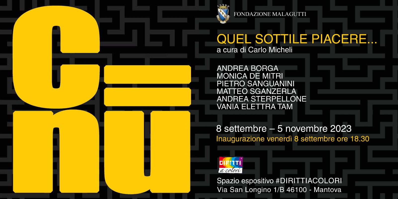 Mostra collettiva curata da Carlo Micheli con le opere degli artisti ANDREA BORGA, MONICA DE MITRI, PIETRO SANGUANINI, MATTEO SGANZERLA, ANDREA STERPELLONE e VANIA ELETTRA TAM a scopo benefico per i progetti di Fondazione Malagutti onlus per l’educazione e accoglienza di minori svantaggiati