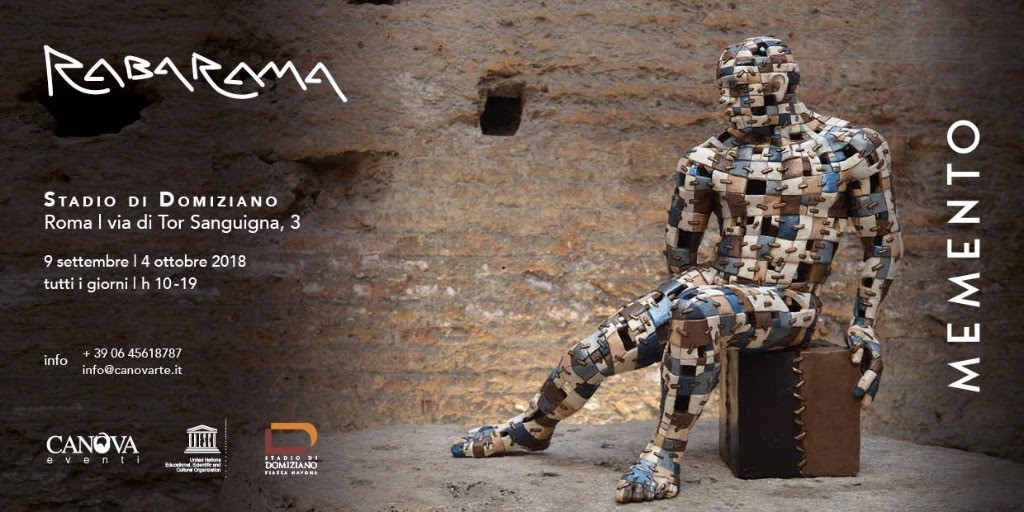 Ideata e curata da Canova- società specializzata in art advisory, editoria d’arte, organizzazione e gestione di grandi mostre ed eventi culturali – Memento desidera volutamente condurci indietro nel tempo. L’esibizione ricorda a ognuno le sue radici, il suo passato, per poter capire chi si è diventati adesso e poter determinare il proprio futuro. Il richiamo al latino si collega direttamente con la presenza di queste creature multicolore in un luogo dove i resti di antiche vestigia romane riconducono il fruitore della mostra indietro nel tempo, spingendolo a intraprendere un percorso di scoperta delle origini. L’arte di Rabarama è resa unica dal connubio di scultura classica, che ritrae l’essere umano in pose a volte riflessive, altre volte protese nello spazio circostante, con la peculiarità della pelle incisa e colorata. I simboli sono anch’essi un percorso di conoscenza e ricerca, che l’artista ha sviluppato lungo tutta la sua carriera: i puzzle, i nidi d’ape e le lettere si collegano alla genetica ed alla concezione dell’uomo come computer biologico, il cui percorso è già predestinato.