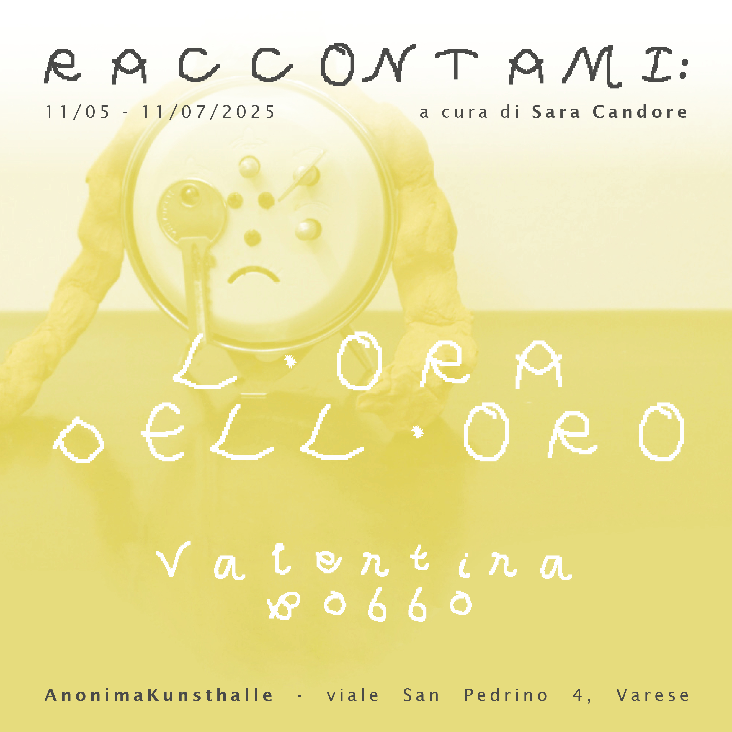 Inaugura domenica 11 maggio 2025 dalle ore 17:00 alle 20:00 RACCONTAMI: L’ora dell’oro, presso AnonimaKunsthalle in viale San Pedrino 4, Varese (VA).