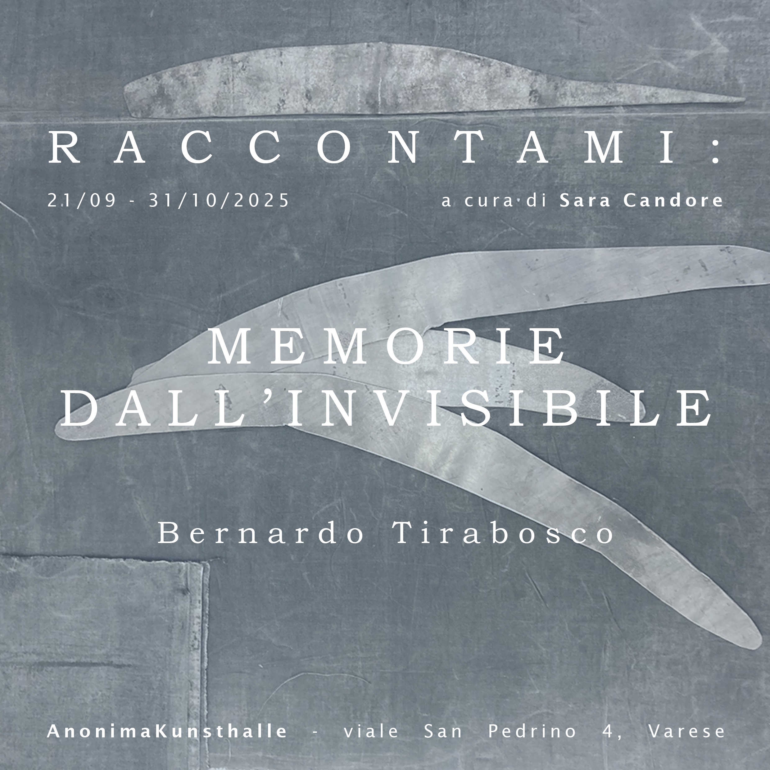 Il secondo appuntamento della rassegna espositiva intitolata RACCONTAMI: a cura di Sara Candore, è la mostra personale Memorie dall’invisibile di Bernardo Tirabosco.