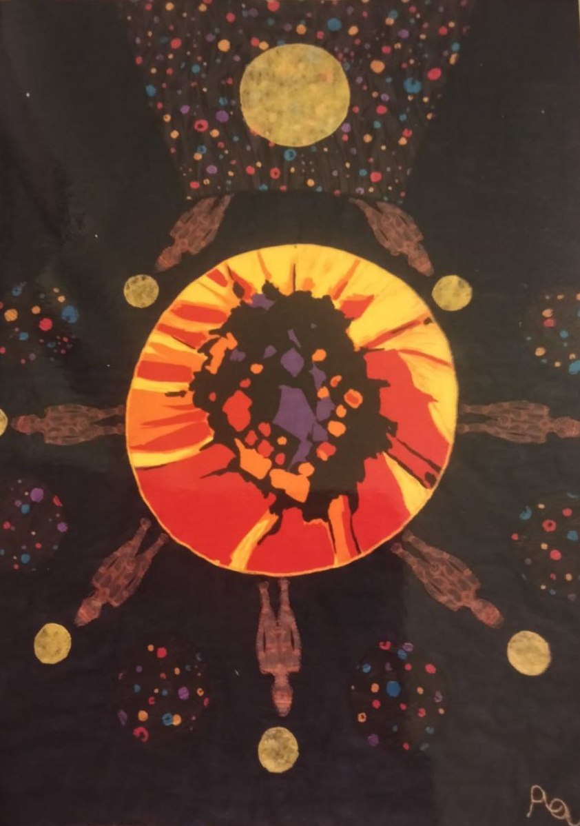 Infine, Anna Paglia porta lo sguardo verso il cielo. Le sue costellazioni, le sue galassie, i suoi multiversi non sono semplici rappresentazioni astronomiche: sono visioni, mappe interiori, tentativi di dare forma all’infinito. Le sue tele sembrano sospese tra levità e densità, tra scienza e poesia, tra ordine e caos. Guardarle significa avere la sensazione che l’universo, per un attimo, si avvicini, o che siamo noi ad avvicinarci a lui. Le sue opere non descrivono: evocano. Non spiegano: suggeriscono. Sono finestre aperte su un altrove che non è distante, ma profondamente connesso alla nostra interiorità.