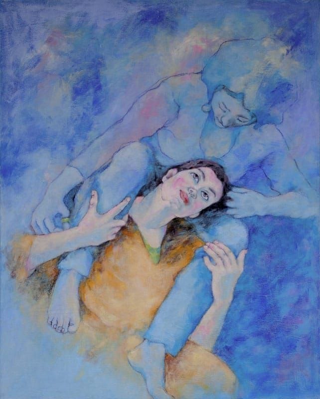 Le cinque protagoniste portano in mostra universi molto diversi tra loro. Anita Arrighi lavora con il tessile come fosse un’estensione della memoria: ogni filo, ogni trama, ogni colore diventa racconto, gesto, ricordo. La sua lunga esperienza tecnica e didattica si traduce in opere che non sono semplicemente “fatte”, ma costruite con una cura che è insieme artigianale e poetica. Nei suoi lavori si percepisce il tempo: il tempo del gesto, il tempo dell’apprendimento, il tempo della trasformazione. Le sue superfici tessili sembrano custodire storie che non si dicono a voce alta, ma che si rivelano lentamente, come confidenze sussurrate. Germana Bartoli, con la sua formazione accademica e gli anni dedicati alla Storia dell’arte, esplora invece il silenzio come luogo dell’anima. Le sue figure femminili sembrano sospese in un tempo interiore, lontane dal rumore del mondo, immerse in una dimensione che non è fuga ma concentrazione, non isolamento ma profondità. Il segno diventa voce, il colore diventa respiro, e quel silenzio si rivela un territorio di ascolto e introspezione. Le sue opere non gridano: attendono. Invitano a rallentare, a sostare, a lasciarsi attraversare da una quiete che non è immobilità, ma densità emotiva.