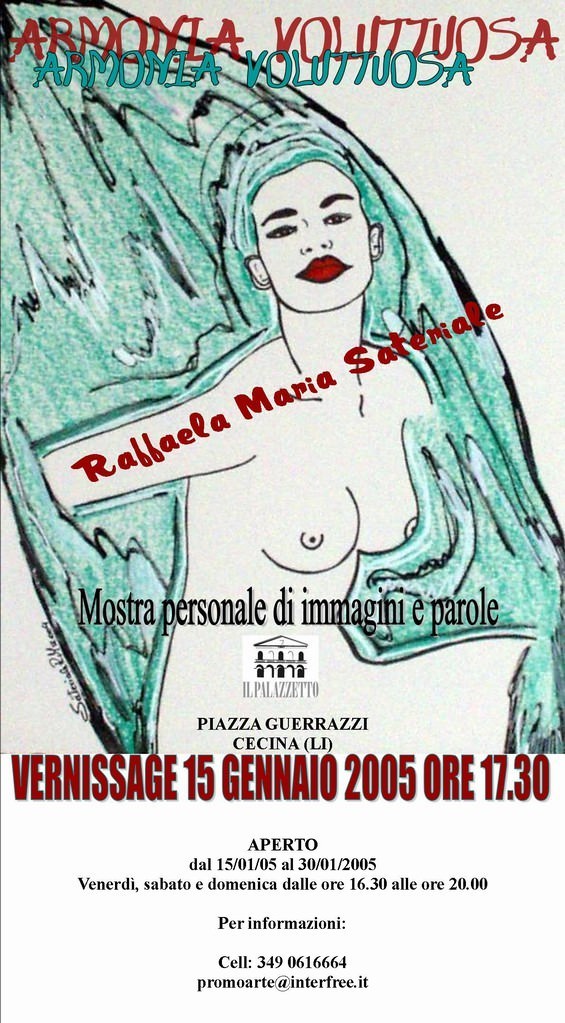 Raffaela Maria Sateriale è nata nel 1964 a Muri Argovia, in Svizzera. Da alcuni anni vive in Toscana, dove il suo lavoro di organizzatrice di importanti mostre è apprezzato, non meno della sua attività di pittrice.
