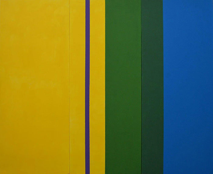 Iannone propone una serie di pannelli, dipinti con stesure compatte di colore, che ci restituiscono ritmi, limiti, passaggi, dominanze. L’essenza stessa della materia-colore opaca, suggerisce una riflessione dello stato d’animo come atto co-creativo attraverso il dialogo con l’ambiente circostante.