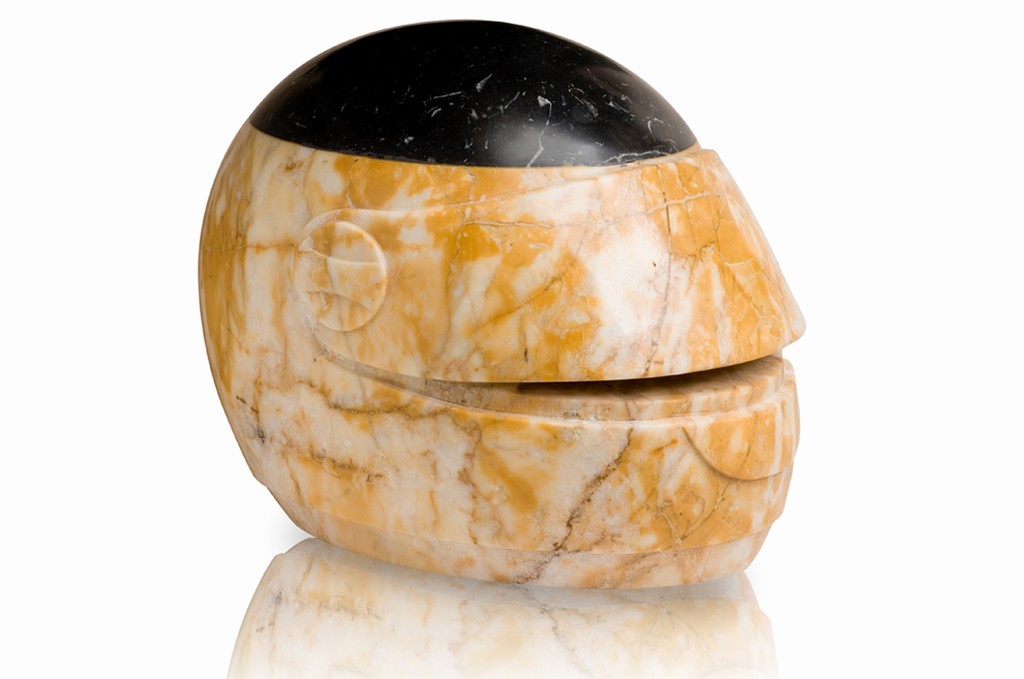 Di lui hanno detto: “Il motivo del casco, che fa di chi lo indossa una sorta, nel bene e nel male, di guerriero metropolitano contemporaneo, era già affiorato in alcune opere pittoriche di Leone come premonizione e come una sorta di personale ossessione per quella che, nelle sue stesse parole, “è una maschera, un travestimento invisibile dietro cui coprire il viso per nascondere la propria identità o per simularne un’altra”. (….) Ma nell’esito pittorico e anche nei coloratissimi studi per le sculture non c’è molto di quell’inquietante, tetragona impenetrabilità perfettamente immedesimata con le caratteristiche dei singoli marmi utilizzati nella serie degli “otto vizi capitali”. (…) Unendo le varie colorazioni dei marmi ad una sempre diversa apertura della visiera, fino alla completa chiusura, Leone ha sorprendentemente rovesciato l’inespressività del casco trasformandolo da maschera in “anima” che manifesta debolezze e sentimenti malati. Sono vizi così forti da trasudare idealmente attraverso il casco, rendendolo tragicamente espressivo e non di rado trasformandolo quasi in una grande bocca spalancata per urlare. Sono appunto “gli abiti del Male”, come li definiva Aristotele. (…) Così, per molti aspetti, i caschi di Raffaele Leone sono icone dure, efficaci e quasi pop che pietrificano quel senso d’angoscia e di drammatico annullamento del sé più profondo ed autentico in cui oggi sprofondano sempre più vite. (….) Il casco, simbolo di velocità, anonimato e spersonalizzazione, diventa quasi uno strumento di denuncia o perlomeno di profonda riflessione su tanti nostri modi sbagliati di stare al mondo che ci separano, ci segregano dalla possibilità di vivere un rapporto sano ed equilibrato con gli altri. La sorprendente interpretazione dei caschi offerta da Raffaele Leone ce li fa guardare con occhi nuovi ed imprevisti: “l’arte rinnova – ha notato la scrittrice Anais Nin – la nostra percezione delle cose. Quel che finora c’è stato familiare, cessa di esserlo…Ed è come se, per magia, cogliessimo dei nuovi significati”. Con queste opere Leone non poteva lasciarci testimonianza più concreta di un forte impegno etico inseparabile da un’autentica passione artistica”. (Gabriele Simongini)