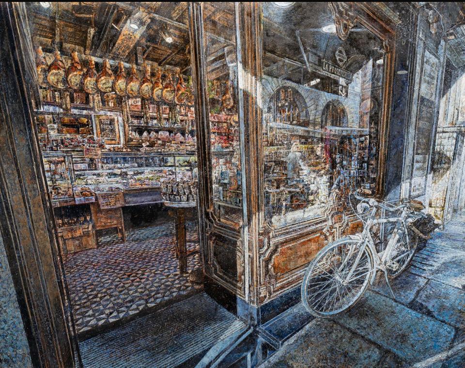 I personaggi, che a volte si intravedono tra una miriade di cose accuratamente costruite con grumi materici di colore, assomigliano a delle mere apparizioni divenendo anch’essi un oggetto tra gli oggetti. Queste presenze sembrano allontanare o rifiutare un contatto diretto con l’osservatore per restituirsi e rendersi presenti attraverso un’immagine evanescente, che sembra assumere caratteristiche formali legate al sogno e alla rarefazione dei ricordi.