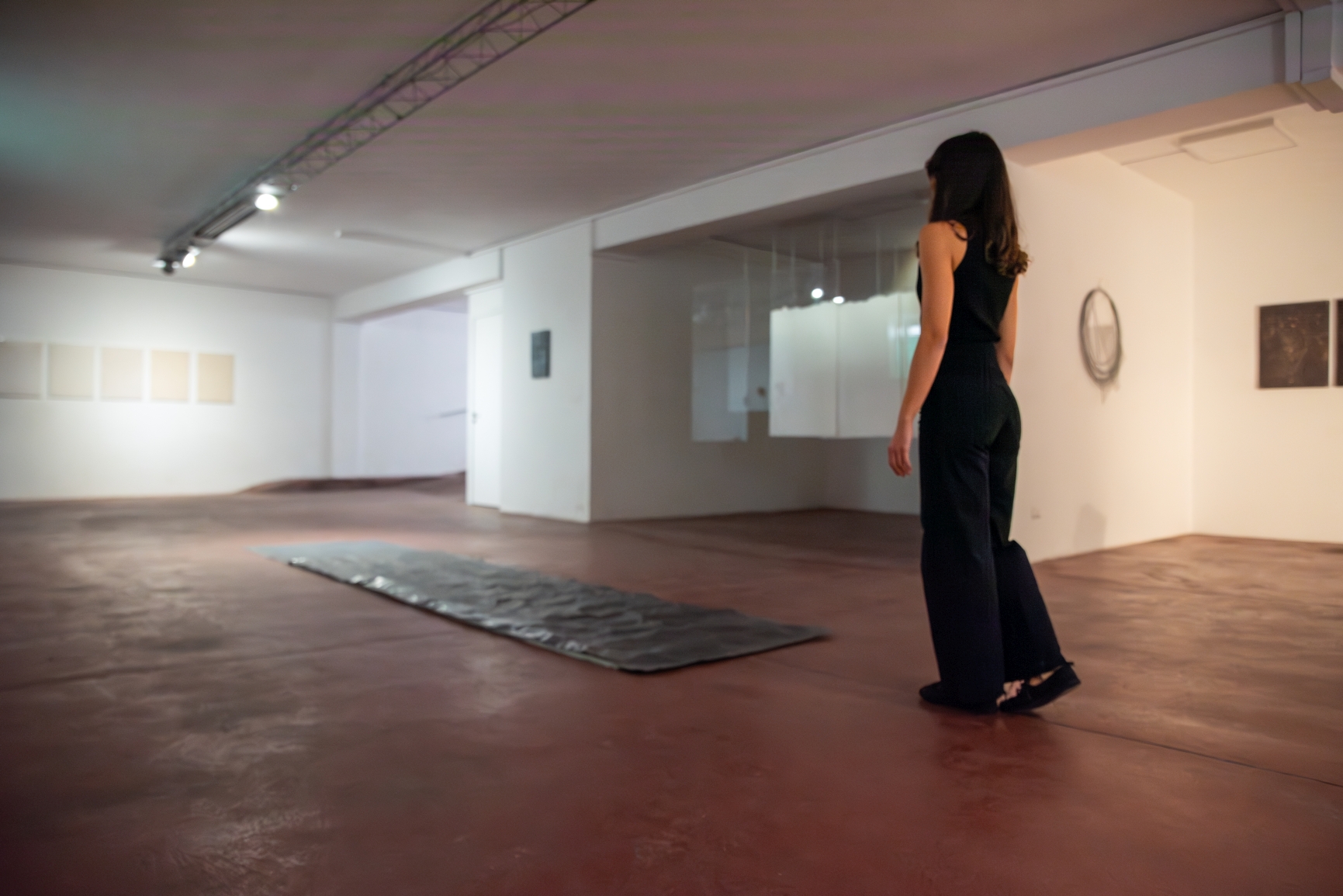 Al pubblico è rivolto un invito a partecipare attivamente alla scena espositiva, per una comprensione estetica più profonda e consapevole che va oltre l’atto del vedere: si fa esperienza tangibile dell’ambiente immersivo “Immagine e assenza”, «che genera una proiezione di paesaggi e viatici sensoriali» scrive la curatrice, o si lascia percorrere il camminamento di 4 metri e mezzo dell’opera “Il tuo peso”, che lo spettatore col proprio corpo può modificare liberamente. Il percorso della mostra “Visivo” si basa su un flusso comunicativo ben preciso, orientato all’esperienza delle superfici fisiche, memoria di forma.