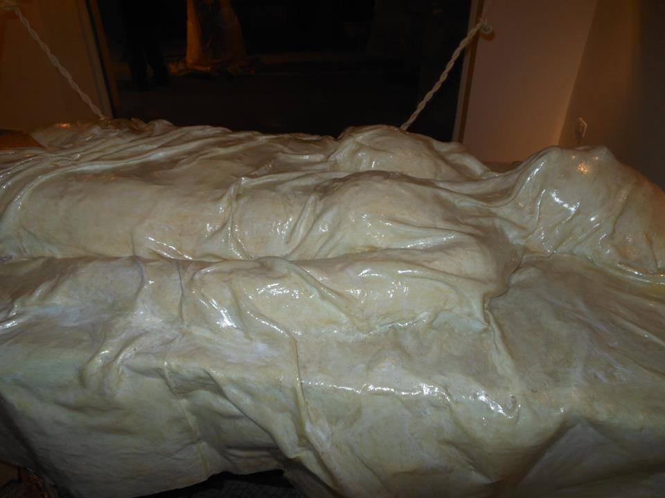 L’artista esplora i complessi frammenti dell’Amore suscitando da sempre nel pubblico, un grande interesse”, spiega Sveva Manfredi Zavaglia. “Ci presenta attraverso la sua ricerca espressiva figure per la maggior parte donne nel loro travaglio interiore, nel loro mondo doppio, romantico e amoroso, immaginario e realista. Ci permette di scrutare il mondo interiore della femminilità, riflettendo sui momenti vissuti e di considerare nuovi valori, suggestioni che diventano utili spunti per il nostro futuro. Infatti, grazie alla materia (tessuto) che lavora con maestria, Raffella Corcione Sandoval ci aiuta a comprendere meglio il linguaggio segreto della sua Arte. Le sue opere ci emozionano, andando oltre la superficie delle cose. Il nostro percorso esistenziale diventa cosi come il suo cammino artistico, ricco di spunti di riflessione, di luci e ombre, di melodie dai romanticismi solitari e melanconici e di racconti di vita vissuta, a volte calpestata, dalla morte alla rinascita. Una Catarsi: una rinascita attraverso l’opera”. il titolo scelto per questa mostra che è tratto dalla specularità della parola Simulacro Orcalumis, concetto espresso a pieno nell’ opera scultorea Sindone Partenopea, per la prima volta presentata a Roma, dalla quale scaturisce il senso ultimo dell’ identità dell’ artista, dando vita alle opere in esposizione. L’artista ha tentato di afferrare, nelle sue opere, un istante poetico in cui la materia grezza trasmuta in materia di luce, in simbolo dell’ esperienza vissuta con la percezione dell’ invisibile .