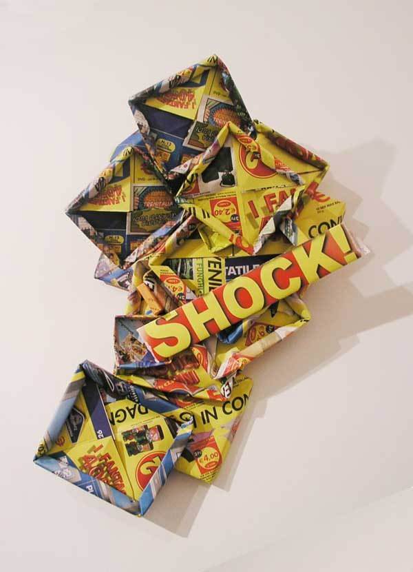 Nel caso di questa installazione presso il Portale di Pavia, laboratorio di restauro per propria natura rivolto ai materiali del passato (sculture lignee, tele, cornici, oggetti di arredo sacro e altri elementi decorativi) Formenti rovescia il rapporto con i segni storico-artistici attraverso la manipolazione iper-fisica delle strutture dello spazio. Adotta diverse strategie, in primo luogo la disseminazione di pixel-oggetti (origamiche scatoline-dettagli cartacei-fusioni di colori stampati); quindi l’appropriazione indebita delle cornici dentro e fuori dagli aulici perimetri; infine il dripping-oggettuale di radice fluxus per interferire con stereotipi e spargimenti sui meccanismi di attenzione dello spettatore. Anche in quest’occasione, l’alchemica Formenti trasforma in pura vibrazione verbo-visiva la congerie di parole e immagini che si risvegliano dal torpore della comunicazione (scritture esplodenti, echi di mosaici materici, foto-fantasmi cromatici). Si tratta di un esercizio manuale e immaginativo che interroga il mondo sensibile innescando nei luoghi provvisori dell’arte nuovi gesti d’invenzione, tracce invasive che si arrovellano nelle cronotopie della memoria, insieme con altri rumori.