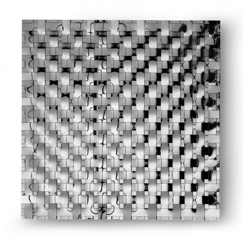 Un rapporto estremamente fisico con i materiali, che scaturisce dalla necessità di Iacopino di "farli suoi" tagliandoli, intrecciandoli e plasmandoli. Diversi sono i supporti utilizzati, che vengono prelevati dal quotidiano e ricontestualizzati con ironia nelle opere: metri da sarto, strisce di velluto e raso, fili di rame e carta fotografica stampata. Anche in questo caso le suggestioni sono date dalla luce che, riflettendosi su queste griglie estremamente geometiche, da' vita a riflessi sempre nuovi, variando continuamente la profondità e l'intensità cromatica delle opere.