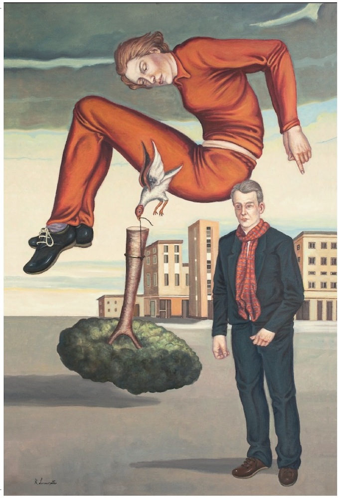 Se proprio si volesse aggiungere qualcosa alla sintesi perfetta di Lorenzetti, visto che è lui stesso a chiederlo, direi che, fra l'indicazione dell'età e la condizione di autodidatta, avrei considerata opportuna la presenza di un epiteto che ne avesse segnalato non tanto la provenienza geografica, ma, piuttosto, la condivisione di una particolare vocazione spirituale: "padano". Padani, più ancora centro-padani, sono gli umori lirici di Lorenzetti, la sua disposizione sentimentale a controbilanciare la piattezza, l’irritante uniformità del territorio in cui vive, con la variabilità senza freni della attività fantastica dell'inconscio, su cui si apre una finestra che ci introduce nella dimensione dell'imprevedibile, dell'epifania che si manifesta per visioni misteriche, bizzarre, di interpretazione mai univoca, aeree nella loro inconsistente aderenza al terrestre, serene nella loro ordinaria mostruosità. La realtà viene ribaltata nel principio di ragione, annullata nella forza di gravità, rimescolata con un gioco infinito di tarocchi in cui tutti tutto può essere allo stesso modo vincente e perdente, bello e brutto, buono e cattivo, con storie mai concluse che ne rincorrono altre, incubi che diventano favole e favole che diventano incubi, continuamente, neanche darci il tempo di provare le sensazioni corrispondenti. Ciò che conta, in queste storie senza storia, in questi voli a mezz'aria senza una meta precisa, è altro, la capacità di ogni singola comunicazione visiva di sorprenderci, di spaesarci, anche di impressionarci negli accostamenti più mostruosi, nelle compenetrazione di colpi e di cose apparentemente inconciliabili fino a suggerirci la possibilità che quei tarocchi nascondano un significato recondito, oscuro, ma rivelatore del tutto come la ragione non sarebbe in grado di fare. Padano è il surrealismo di Lorenzetti, imparentato a quello dei piacentini e di tutti gli altri artisti dell'area di provenienza e formazione varia, che, dal soggiorno ferrarese di de Chirico in avanti, hanno percorso sentieri del visionarismo, per ereditarietà ideale piuttosto che diretta, per affinità di anima piuttosto che di sangue, di gusto piuttosto che di forma. Lorenzetti non ha padri legittimi, né vuole averli; gli basta essere figlio della grande madre, questa è la cosa più importante, essere il fratello di fratelli mai conosciuti, generato autonomamente da loro presso altre case, chissà quando, chissà in quale circostanza. E anche quando nella pittura dell'ultimo quindicennio, denuncia un mutamento stilistico, una maggiore maturità espressiva che dall’istintivo primitivismo della prima produzione è giunto a concepire forme più compiute che sembrano rivelare la conoscenza di alcuni mesi manifestazioni tipiche del rappel a l’ordre italiano per es. il Carrà di Valori Plastici, il Novecento di Oppi, il Realismo magico di Usellini e Donghi, Lorenzetti preferisce rimarcare la coerenza con se stesso e con il proprio inconscio, unica, grande fonte esplicativa delle sue poesie pittoriche. Ciò che muta più significativamente, semmai, e la consapevolezza del gioco onirico che viene accelerato, talvolta anche con cinismo e spietatezza, nel tentativo di ottenerne esiti sempre più imprevedibili, volteggi ed acrobazie aeree sempre più sprezzanti della gravità terrestre, compenetrazione sempre più costose, espressione sempre più mostruoso, espressioni sempre più urlate.