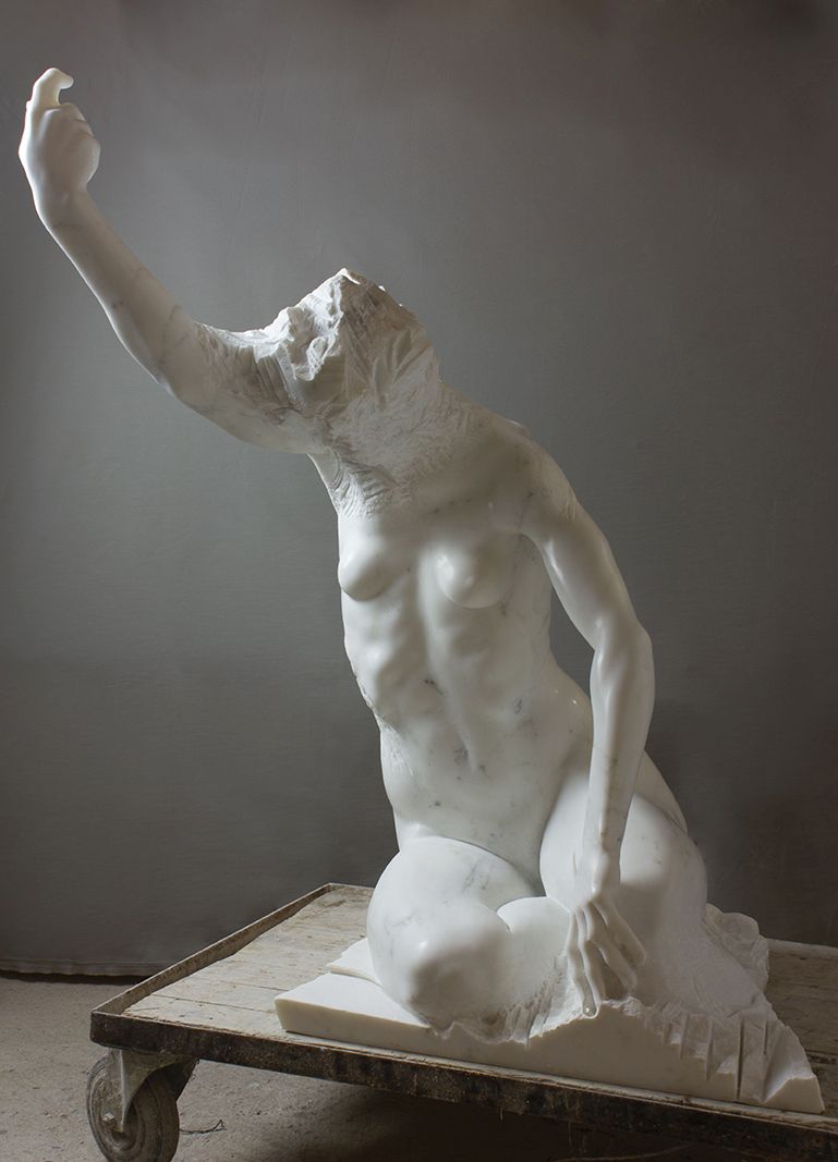 I due artisti si approcciano al figurativo con una poetica analoga: nel nucleo di opere presentate – circa venti tra sculture (Rane) e dipinti (Watson) di medie e grandi dimensioni – appare infatti chiaro come entrambi, pur usando linguaggi e materiali diversi – la scultura in marmo il primo e la pittura a olio il secondo –, concentrino il proprio lavoro su singole sezioni dell’opera, lasciando il restante in uno stato di incompiutezza astratta.