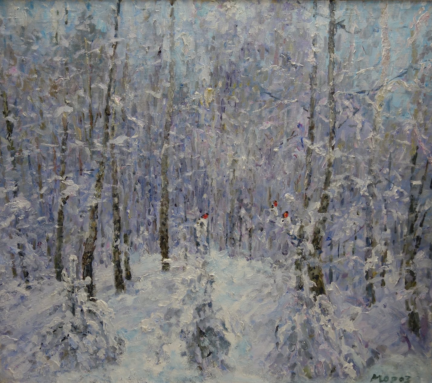 Si avrà dunque l’occasione di vedere in un unico allestimento, svincolati da una tematica comune, i paesaggi del francese Henry Maurice Cahours (1889 – 1974), in particolare le suggestive marine dalle tonalità e dalla luce inconfondibili, le nature morte del fiorentino Enzo Faraoni (1920 – 2017), la cui “semplicità” è così intensa da sfociare in un disarmante lirismo e naturalmente i rappresentanti delle scuole di Mosca e San Pietroburgo del cosiddetto Impressionismo sovietico. Saranno esposte le potenti e materiche tele di Georgij Moroz (1937 – 2015), la cui forza espressiva riesce a coniugarsi con un’inaspettata delicatezza poetica, come nella neve dal titolo Pettirossi, le accoglienti atmosfere di Gleb Savinov (1915 – 2000), ben rappresentate da Il racconto della fiaba o Dacia illuminata, e altri lavori dei principali esponenti delle due scuole, tra cui Boris Lavrenko (1920 – 2001) e Aleksej e Sergej Tkacev (rispettivamente 1925 e 1922). Saranno in oltre presenti opere del russo Igor Smekalov (1965), della danese Birgitte Lykke Madsen (1960) e del novarese Andrea Pescio (1972).