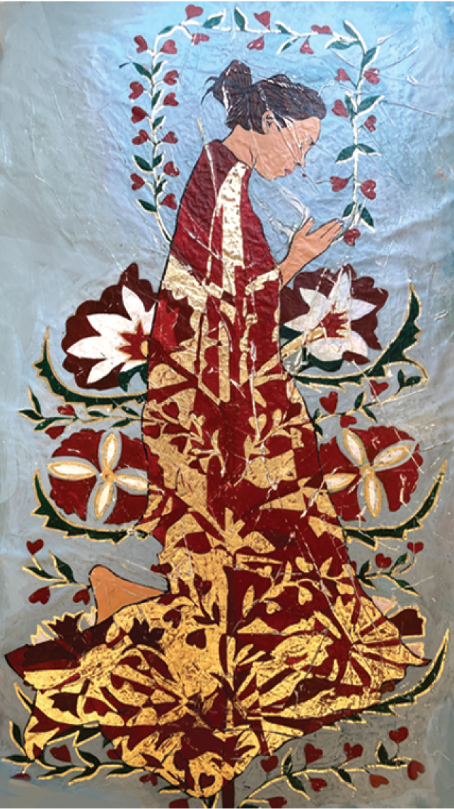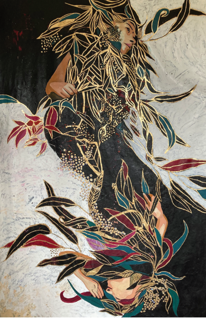 La rinascita è stata interpretata spesso nel mondo dell’arte, e Rasha Amin, con questa mostra, ci racconta la sua. Una rinascita come inno alla vita e alla femminilità! Le sue straordinarie tele sono tutte all’insegna di una rifioritura primaverile con figure femminili che sembrano danzare il ballo della fertilità, mentre una serie di lavori su carta di un antico libro di mappe della Magna Grecia sono chiaramente un omaggio alla natura.