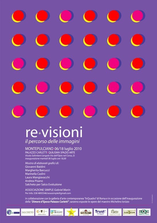 Nella magnifica cornice di “Quilisma Spazio Arte” in Palazzo Carletti a Montepulciano, dal 06 al 18 luglio 2010 “re.visioni”, una mostra di arti applicate, la creativita’ imbrigliata dalle esigenze del prodotto o il prodotto decantato dall‘oniricita’ dell‘arte.