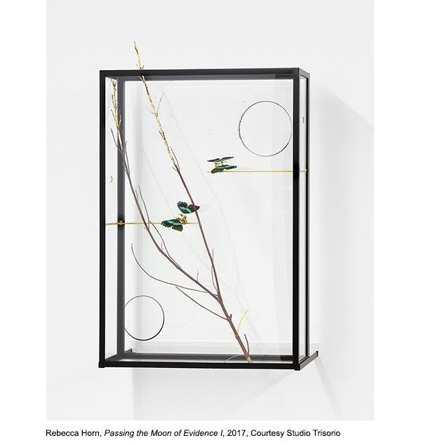 Venerdì 11 maggio 2018 alle ore 19.00 si inaugura presso lo Studio Trisorio in via Riviera di Chiaia 215, una mostra personale di Rebecca Horn dal titolo Passing the Moon of Evidence.