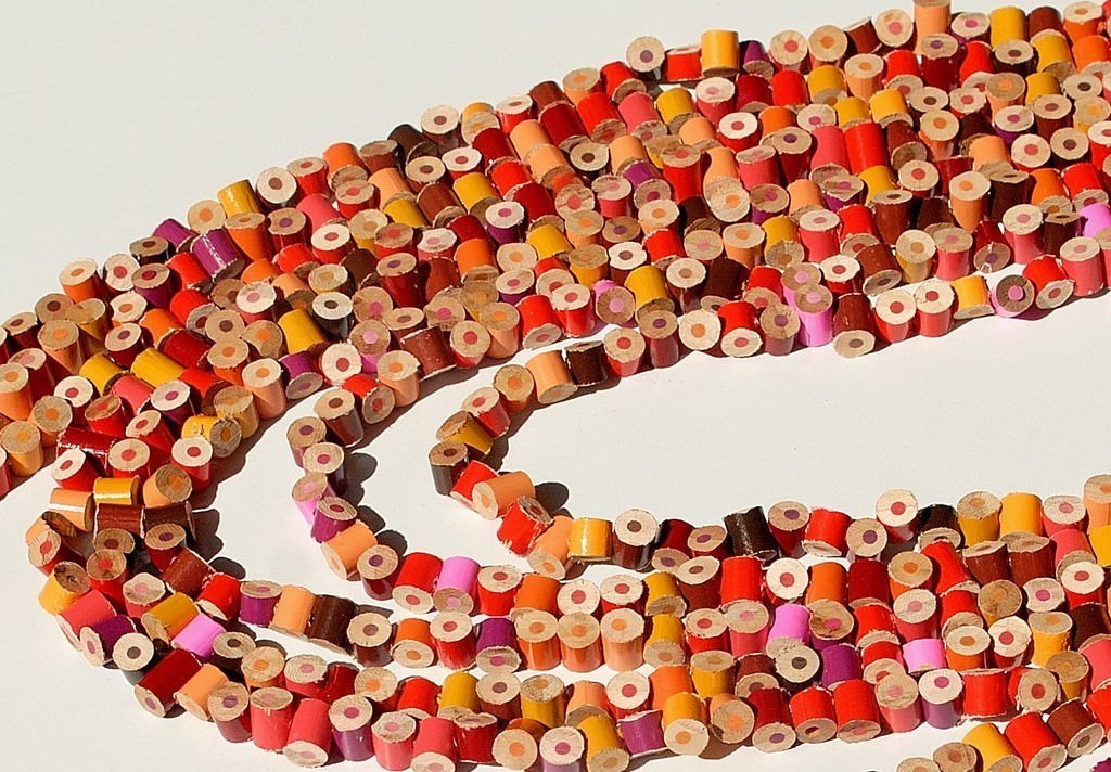 Paola Monorchio, creatice del marchio Glix, trasforma brani e strisce di tessuti preziosi o di vecchie tappezzerie, scartati dalle precedenti produzioni, in gioielli da indossare come abiti. Margherita Marchioni con il progetto Materiamorfosi e Carola Pasquino con C73 interpretano l’ idea del bijoux in maniera diversa: la prima realizza con bottiglie di plastica, tappi, cavi e matite colorate collane poetiche e che ci riportano all’infanzia, mentre la seconda si ispira la futurismo per creare gioielli luccicanti e stravanti con gli scarti industriali delle materie plastiche. Daniela Galluzzo crea lampadari come bolle di filo dalla trama colorata, utilizzando gli scarti di lavorazione delle sartorie, mentre Ilaria Sadun realizza lunghi lampadari come cascate con sezioni di bottiglie fuse. Poi ancora l’ ethical fashion di Made in Carcere con la sua collezione di borse realizzate con scarti di tessuto dalle detenute del carcere di Lecce e l’eco-design di Mark–Pepper, duo di giovani designers napoletani che creano lampade, orologi e appendiabiti con legni di recupero e scarti di lamiera.