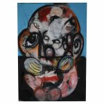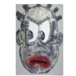 “C’è un volto che ritorna, ossessivo e familiare, in ogni opera di Redlongo. Una maschera stilizzata, quasi infantile: testa rotonda, occhi spalancati, quattro capelli sparati verso l’alto. Sembra un disegno fatto in fretta su un quaderno, un logo, un’icona pop. Ma è molto di più. È un simbolo identitario. È un autoritratto spirituale. È il frutto di una trasformazione dolorosa.”