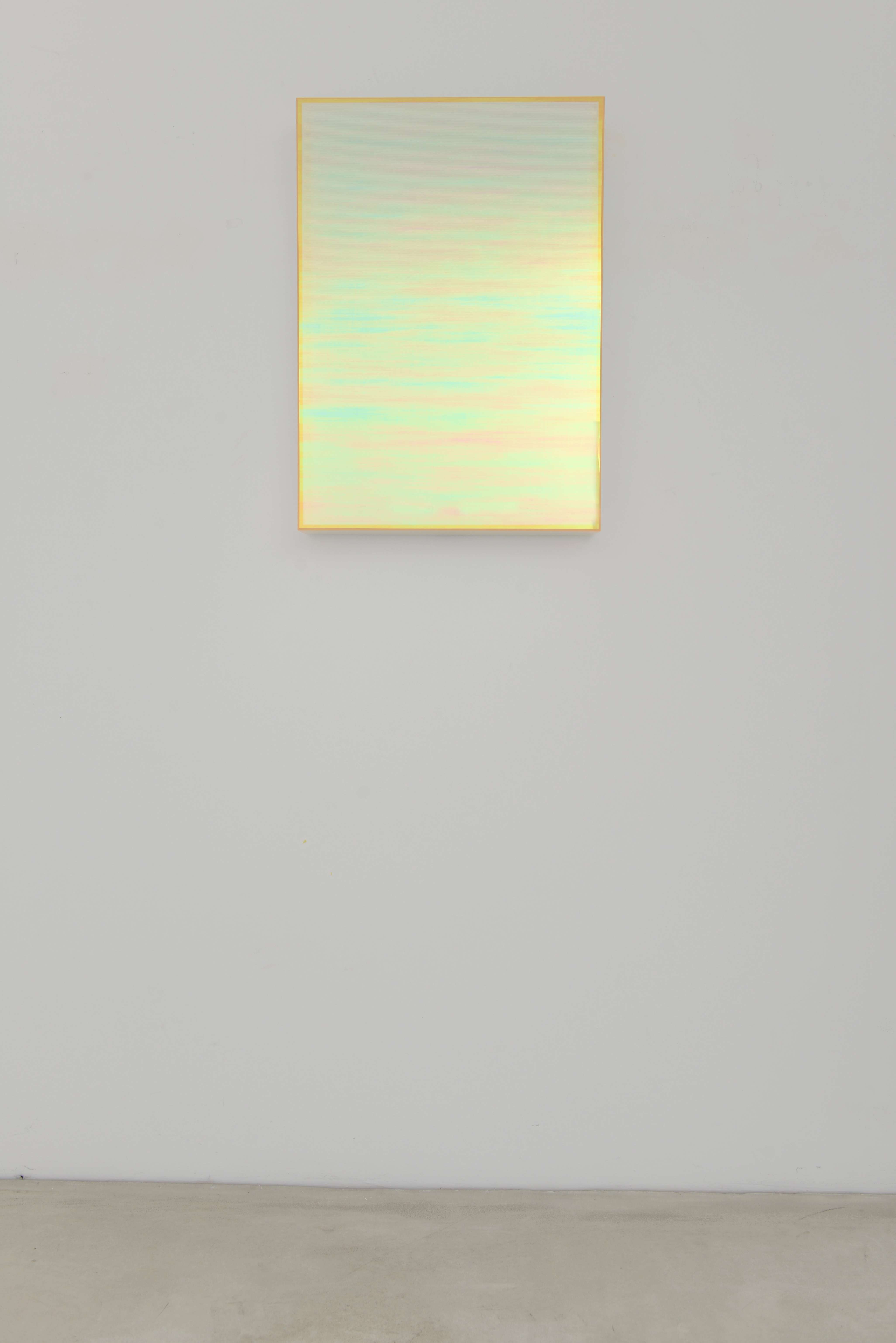 Nella mitologia greca, Iris è la messaggera degli dèi e personificazione dell'arcobaleno, considerato un ponte tra cielo e terra che unisce mondi diversi. Questo simbolismo si lega intimamente al lavoro di Regine Schumann, le cui opere creano una connessione profonda tra il materiale, il plexiglass, e l'immateriale, ovvero la luce. Il titolo "Iris" risuona in perfetta sintonia con il lavoro di Regine Schumann, evidenziandone l’indagine meticolosa ed approfondita del rapporto tra luce e colore.