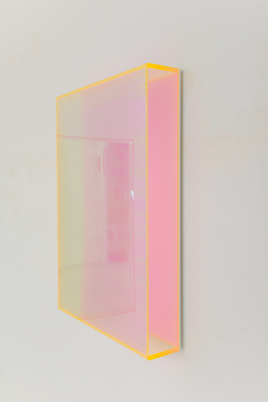 Le lastre di plexiglass creano velature di pigmento monocromatico dalle quali emerge, come in una epifania, la luce che, forgiando superfici d'energia, pervade ed interagisce con lo spazio che le accoglie.”
