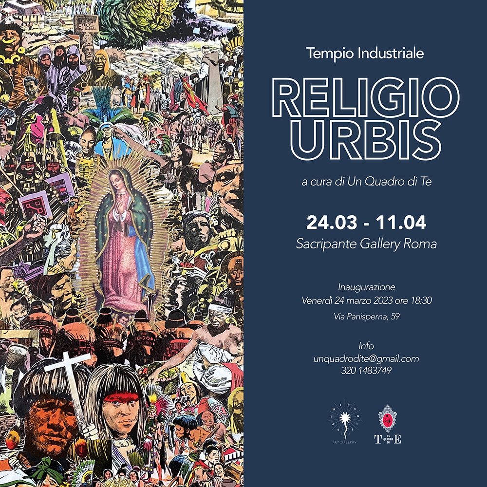 “Religio Urbis” è una mostra facente parte del progetto “Shemà. Il fruscio dello Spirito” ideato da Un Quadro di Te A.p.s. per accompagnare Tempio Industriale e le sue opere in un pellegrinaggio ideale e concreto tra le anime dei visitatori e luoghi legati alla storia e al Sacro. L’esposizione romana è curata e organizzata da Un Quadro di Te A.p.s.