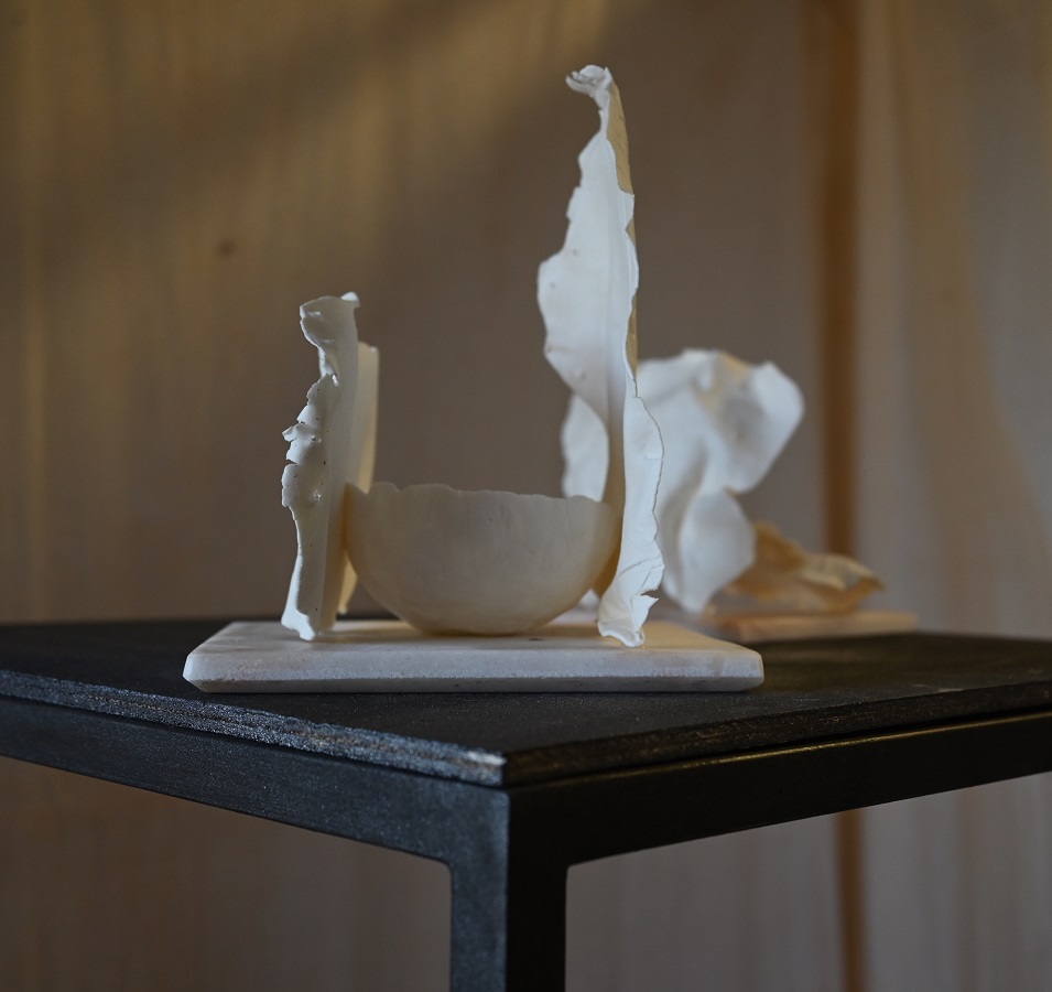 Marina Buening ci invita a concentrarci sulla fragilità attraverso i suoi ultimi lavori di porcellana dove incorpora la carta e altri materiali clay "The World is Fragile and So am I" organismi fragili la cui materia e presenza servono a ricordare la bellezza e la fragilità del nostro ambiente.