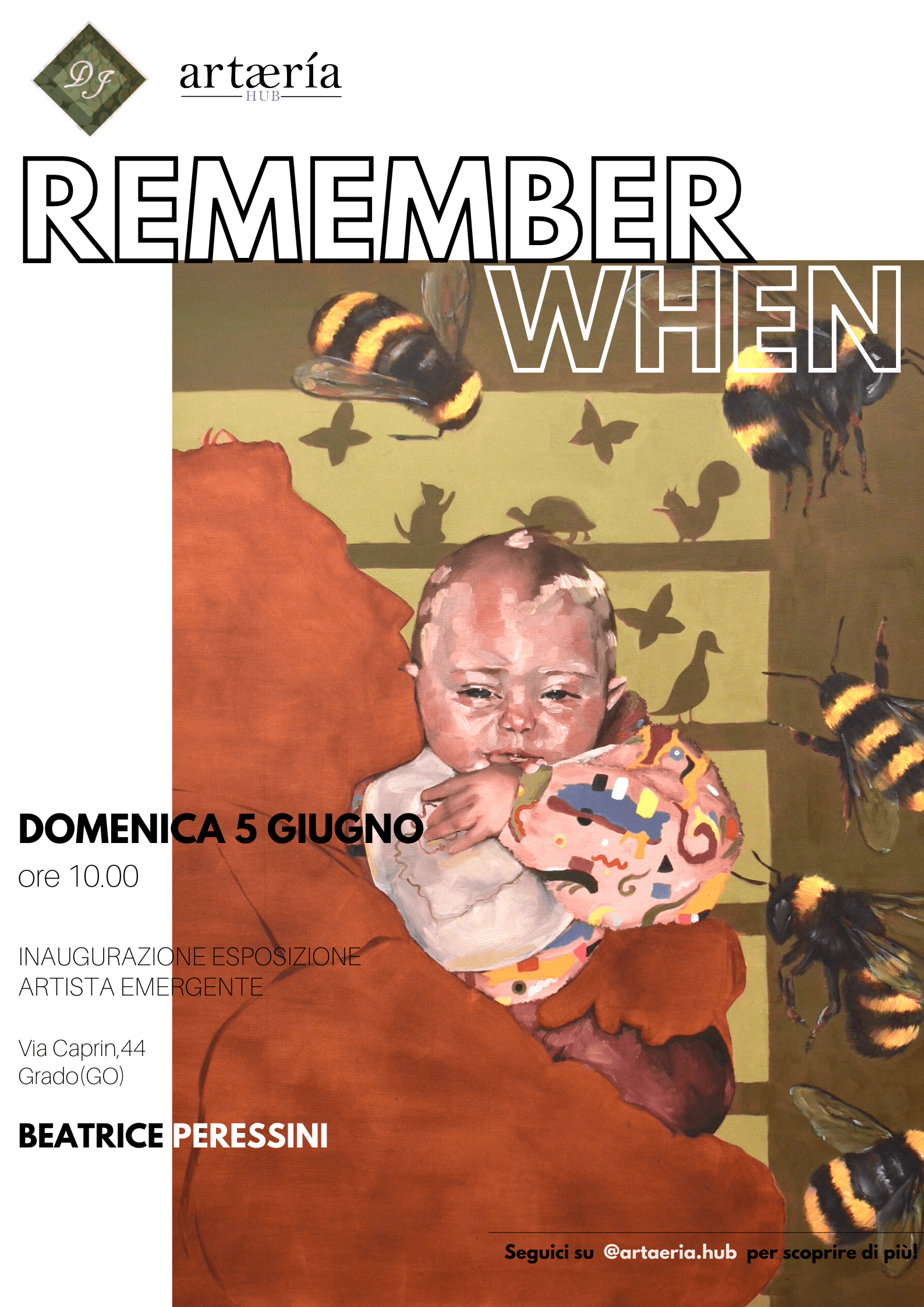 “Remember when” è un viaggio tra i ricordi dell’artista Beatrice Peressini, che si offre allo spettatore spoglia da qualsiasi scudo di difesa. Dalle tele traspare una tensione al limite tra il tragico e il catartico, in un equilibrio di luci e ombre minuziosamente studiato.