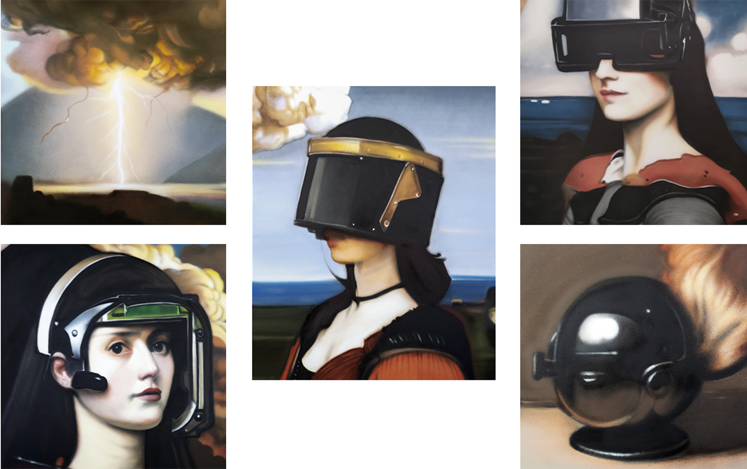«Le opere che saranno esposte – aggiunge Andrea Ravo Mattoni – siano esse ritratti, nature morte o paesaggi, appariranno all’occhio dell’osservatore come plausibili nella loro essenza rinascimentale e classica, anche se con alcuni dettagli insoliti. In realtà, quelle immagini sono interamente create dall’Intelligenza Artificiale. Quello che faccio poi, è quello che facevo anche prima: riportarle sulla tela attraverso la bomboletta. Prima copiavo Michelangelo e Caravaggio, ora copia la macchina-artista».