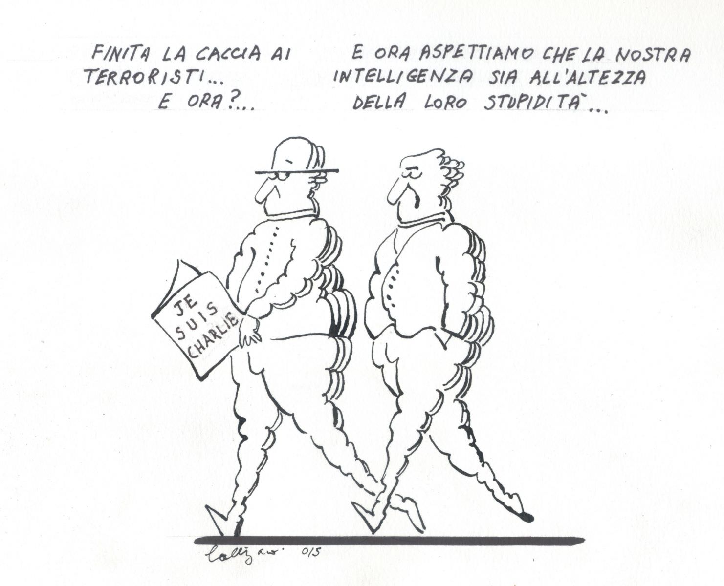 Il titolo "Disegno libero" è nato sull’onda dei recenti fatti che hanno visto coinvolti da atti terroristici disegnatori di fumetti e intellettuali in Francia e Danimarca. Renato Calligaro, autore storico e militante nella satira politica dagli anni '60, dedica proprio a questi avvenimenti una vignetta dallo stile ironico e concettuale dal titolo "Charlie". Il dibattito su questo tema è stato affrontato con un intervento dell’artista e di Giuliana Carbi presso la sede dell’Istituto Italiano di Cultura di Lubiana e si auspica che la mostra possa costituire un'occasione di ripresa e riflessione del tema.