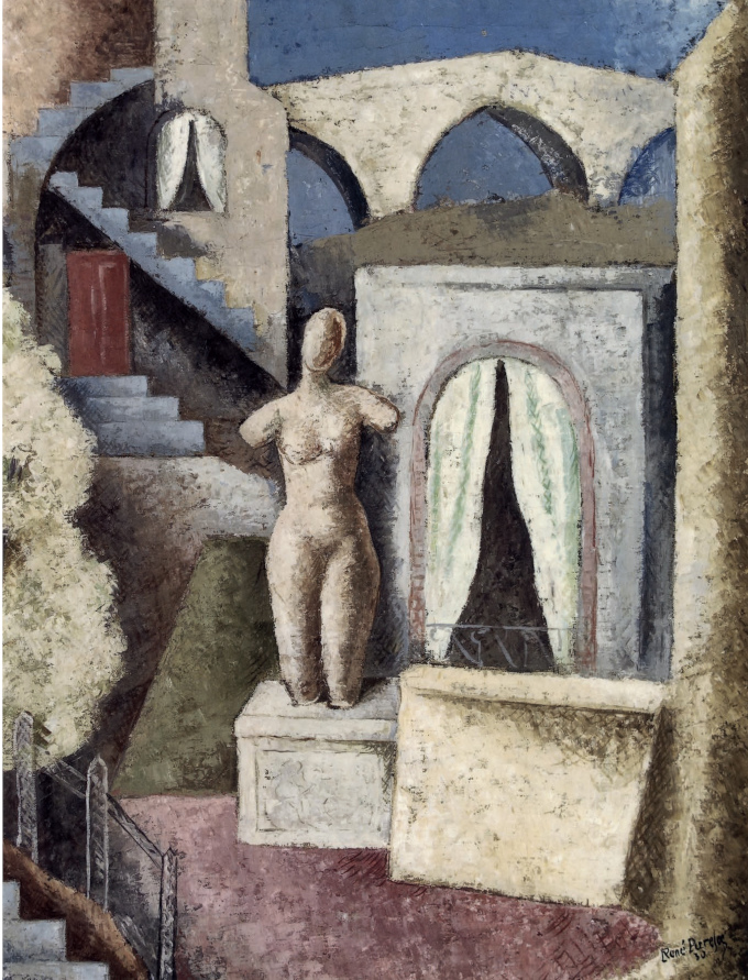 Il terzo decennio si apre con Composizione con statua del 1930, incunabolo di quella produzione caratterizzata da atmosfere rarefatte, stranianti, rese su una superficie pittorica gessosa che ricorda l’affresco, in cui compaiono sculture antiche, manichini, interni vuoti solitari. Ha un’aura misteriosa, magica il paesaggio marino La Comète del 1931 che chiude il percorso dedicato a Renato Paresce.