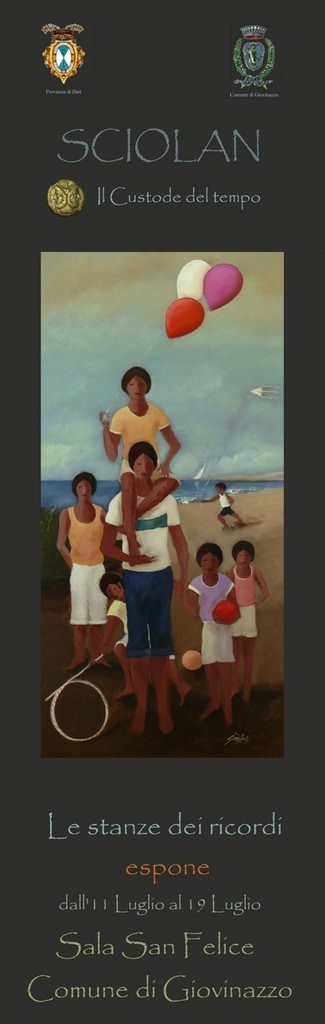Sabato 11 Luglio 2009 presso la Sala Espositiva San Felice – P.zza San Felice del Comune di Giovinazzo alle 19,00, si inaugura la mostra pittorica dell’Artista Pugliese Renato Sciolan “Le stanze dei ricordi”.
