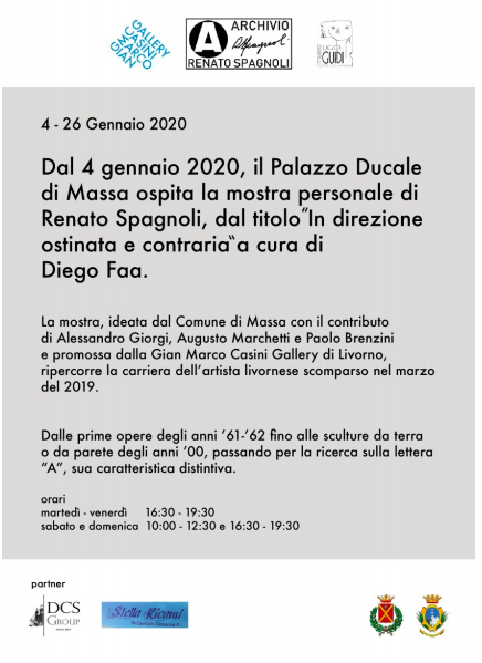 La mostra Renato Spagnoli. In direzione ostinata e contraria a cura di Diego Faa ripercorre le tappe fondamentali dell’artista livornese, dalle prime opere degli anni ’61-’62, fino alle sculture degli anni 2000, passando per la ricerca sulla lettera “A”, sua caratteristica distintiva.