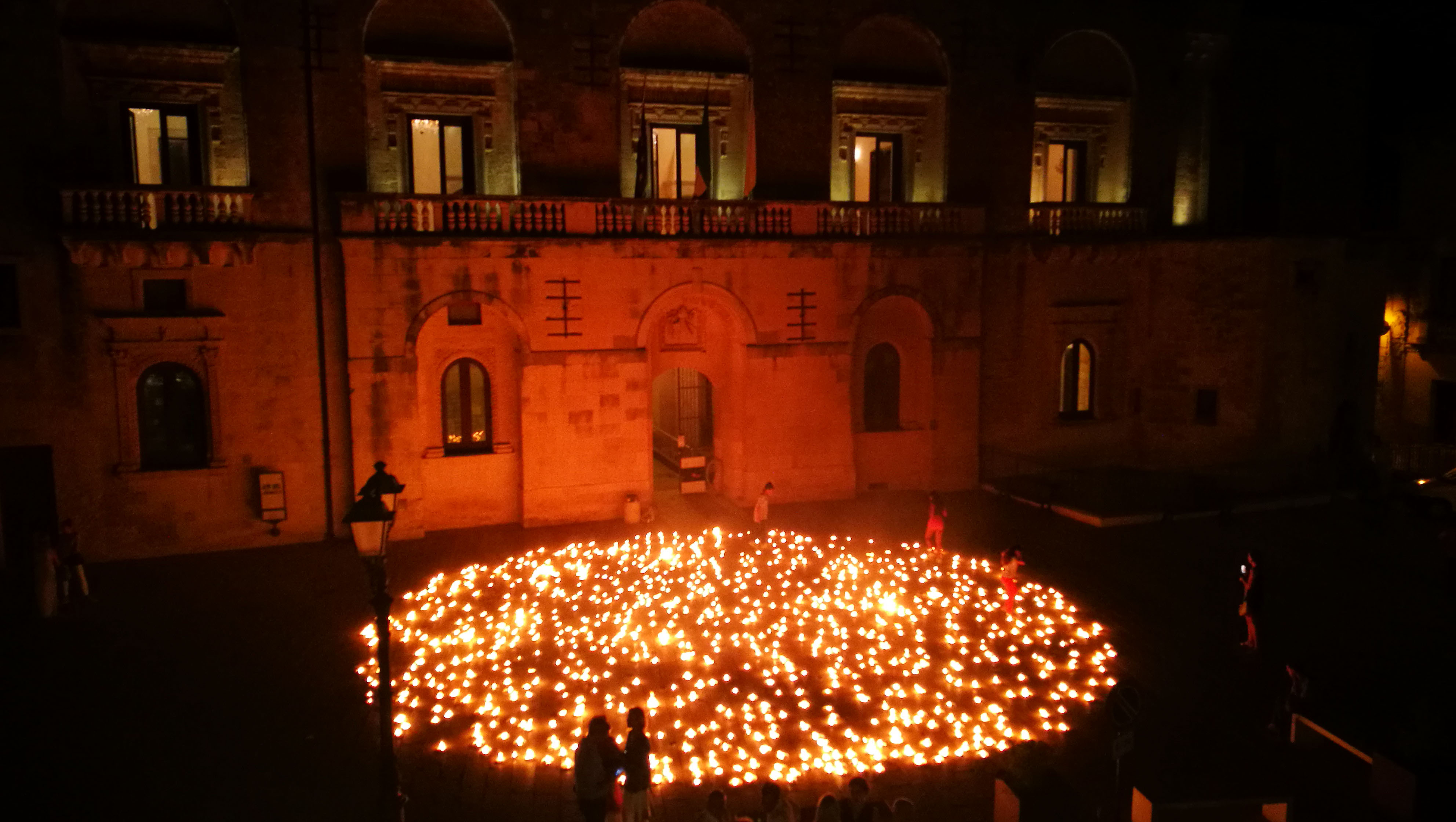 Battesimo del progetto “Tutte le strade portano a Napoli” con la performance “I will keep a light burning” di Renaud Auguste-Dormeuil a Piazza Plebiscito: 1200 candele con cui l’artista disegnerà la mappa del cielo sovrastante la piazza così come sarà cento anni dopo.