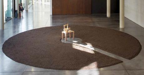 cerchio di otto metri di diametro di terra, con al centro un tavolino con dei foglietti e un secchio