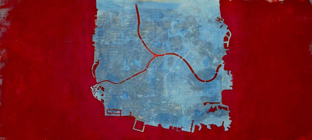 Sono inedite cartografie, giocate su una raffinata rarefazione della materia pittorica, intessuta di