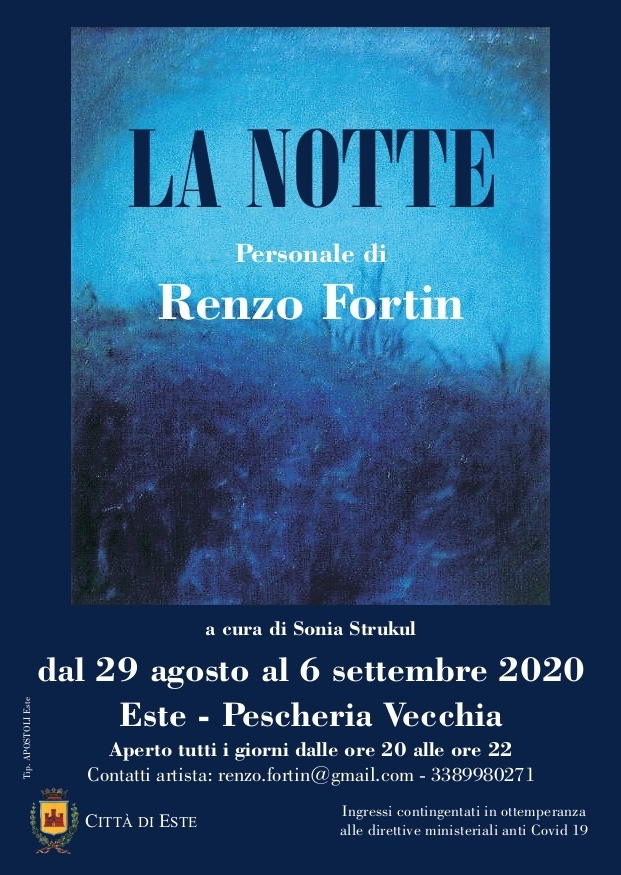 Dal 29 agosto al 6 settembre gli spazi espositivi della Pescheria Vecchia di Este (PD) ospitano “La notte”, personale dell’artista Renzo Fortin, patrocinata dalla Città di Este, a cura di Sonia Strukul.