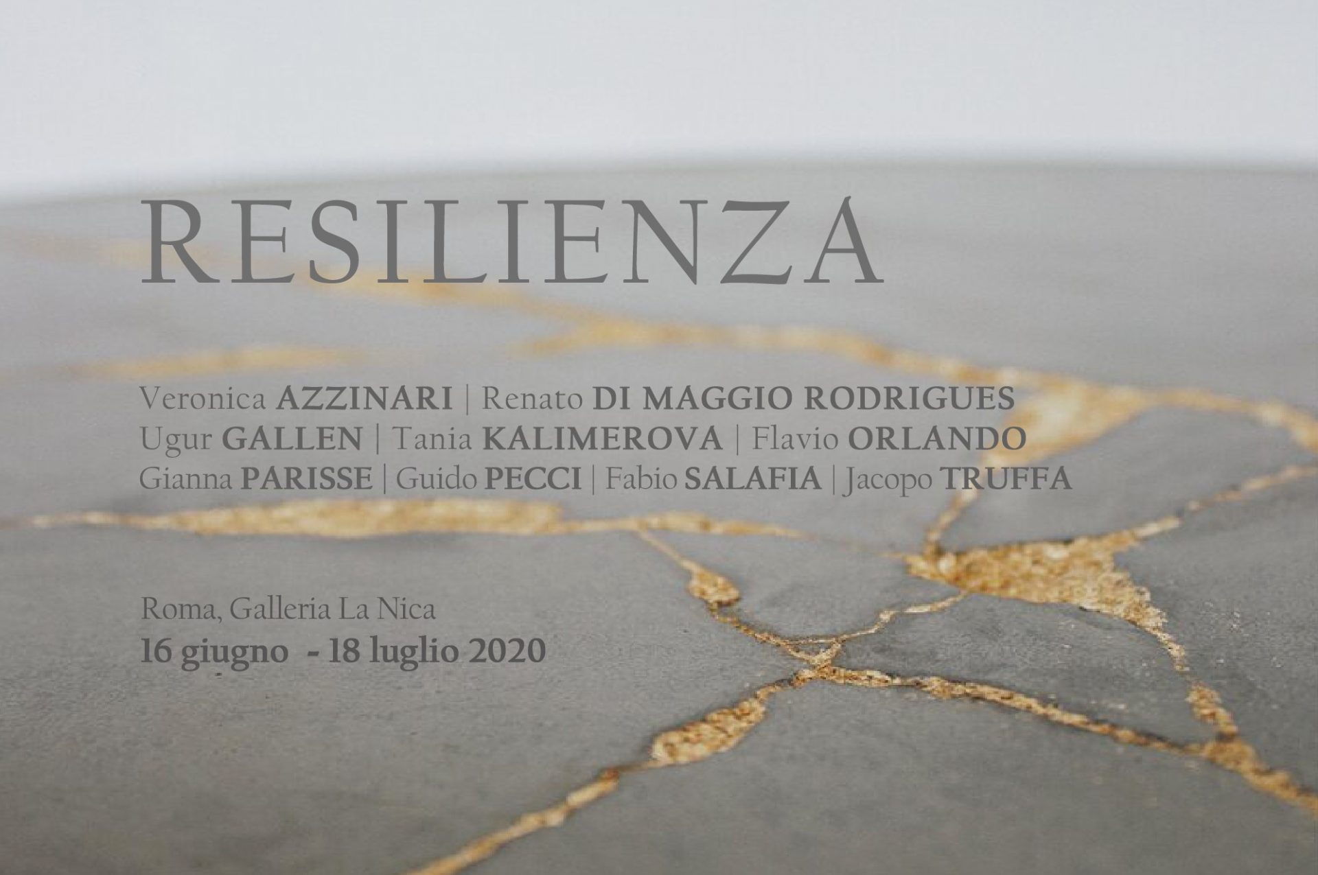 Facendosi portavoce di questo stesso messaggio, per la mostra "Resilienza" esporranno delle opere realizzate come risposta al periodo di isolamento i seguenti artisti: Veronica Azzinari, Renato Di Maggio Rodrigues, Ugur Gallen, Tania Kalimerova, Flavio Orlando, Gianna Parisse, Guido Pecci, Fabio Salafia e Jacopo Truffa.