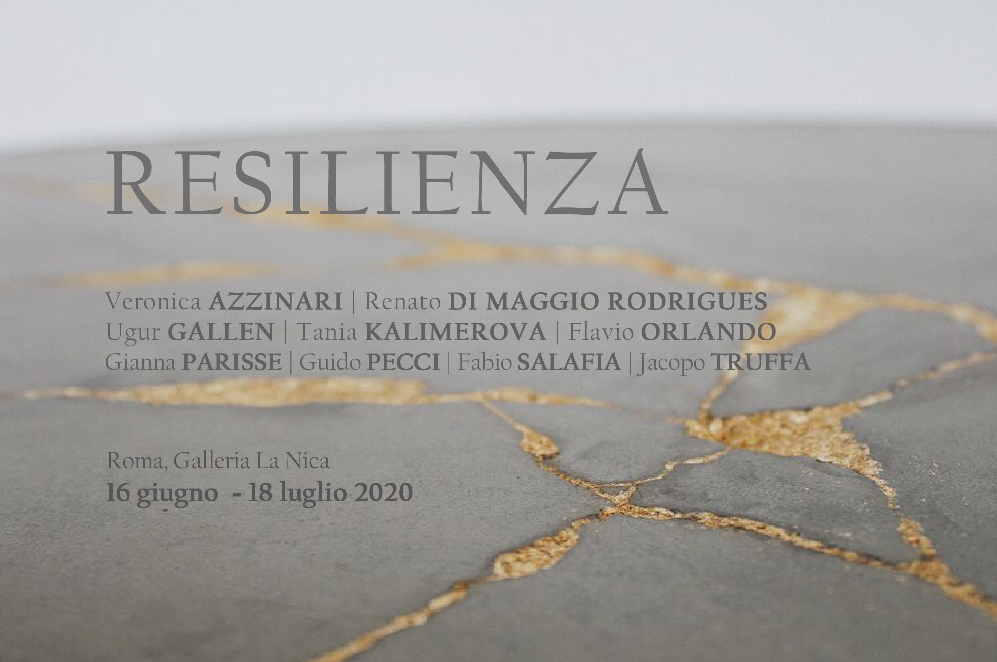 La presente mostra nasce dalla volontà e sentita necessità di riflettere su quanto negli ultimi mesi abbiamo dovuto affrontare collettivamente ed individualmente. Guardando indietro con rinnovato dolore alle tante perdite su più fronti che il nostro Paese ed il mondo intero hanno subìto, guardando anche al presente ancora così incerto e cupo, ciò su cui si vuole porre attenzione è altresì quella forza straordinaria che si cela anche nelle peggiori avversità: la resilienza, quella capacità incredibilmente audace e spesso inaspettata di far fronte ad eventi terribili senza lasciarsi spezzare del tutto. Una forza alla quale tutti noi abbiamo dovuto imparare ad appellarci, ognuno con la propria umanità e fragilità. L'immagine che più si avvicina al concetto di resilienza è quella offertaci dal kintsugi, l'arte di origine giapponese che consiste nell'utilizzare argento e oro liquidi per restituire forma agli oggetti danneggiati, dandogli nuovamente dignità e vita. Il kintsugi ci suggerisce che non si deve scartare ciò che si è scalfito, che le crepe di un oggetto non ne rappresentano la fine, quanto piuttosto una rinascita in potenza che ne aumenta incredibilmente il valore, oltre che la bellezza. È la stessa essenza della resilienza: ognuno di noi dovrebbe sforzarsi di esaltare e valorizzare le proprie ferite, farle diventare trame preziose che fungano da monito per ricordarci le avversità superate, così da crescere attraverso le esperienze dolorose, poiché sono proprio queste che rendono ogni persona unica e preziosa.
