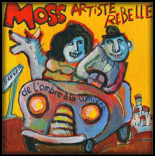 Moss, erede dell’Art Brut, così come definita da Dubuffet ha sempre disegnato e ha cominciato a dipingere all’età di 12 anni, ma è stato soprattutto durante i sette anni di prigione, ai quali è stato condannato per rapina a mano armata, che si è dedicato seriamente alla pittura. Il passaggio dalla cella alla libertà corrisponde al passaggio dalla sola pittura alla scultura, all’aria aperta, vicino al mare. É sulle rive del Mediterraneo che Moss il ribelle è diventato Moss il saggio e ha trovato una certa pace. Moss si appropria del mondo di oggi, di ieri e di domani e ce lo restituisce sotto forme vive, colorate, ispirate al mondo del fumetto, della musica, dei miti e delle leggende, dei romanzi polizieschi… Un universo e un talento che non si può non vedere e apprezzare!