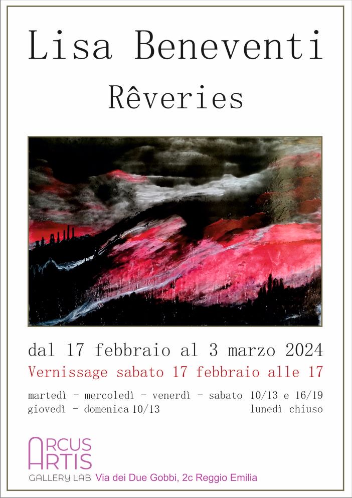 La sua prossima mostra personale, dal 17 Febbraio al 3 Marzo presso Arcus Artis GalleryLab in via dei Due Gobbi, n. 2/c a Reggio Emilia, è intitolata appunto Rêveries e presenta opere che offrono un'esperienza totalmente immersiva, con composizioni astratte di rara potenza evocativa e di straordinaria bellezza, che si ispirano ai personaggi e alle situazioni presenti nei suoi romanzi più recenti.