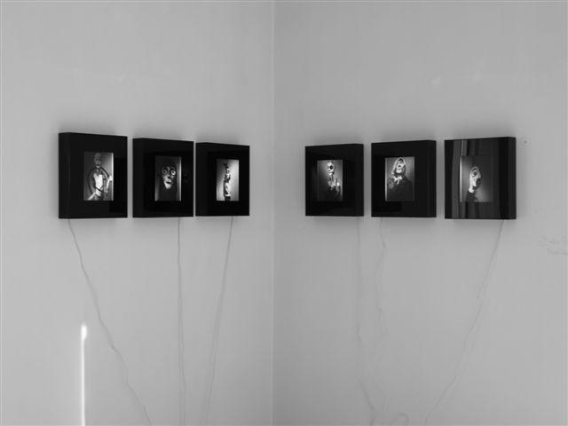 Anche il ciclo di lavori presentato da Daniele Ratti è animato da una forte tensione metalinguistica e dal fascino per l’illusione, la moltipolicazione speculare, la maniera fantastica. L’artista impiega la fotografia per proporre soggetti tratti da altri media, riprodotti su carta radiografica con l’intento di cogliere la sostanza ultima delle cose, le loro interne fratture, il midollo che le anima. In passato ha riprodotto su questo supporto diagnostico immagini tratte dalla filmografia di guerra, nell’intento di rappresentare la malattia che divora la civiltà dall’interno. Per questa mostra propone un ciclo di ritratti di marionette che Guido Ceronetti ha realizzato per il Teatro dei Sensibili. Le foto-radiografie di Ratti riescono a restituire pienamente l’impegno magico profuso dall’autore di queste creature, composte di forma, colore, meccanica e poesia. Riusciamo così a comprendere, per dirla ancora una volta con Borges, che << modellare la materia incoerente e vertiginosa di cui si compongono i sogni è il compito più arduo che possa assumere un uomo >> (Le rovine circolari).