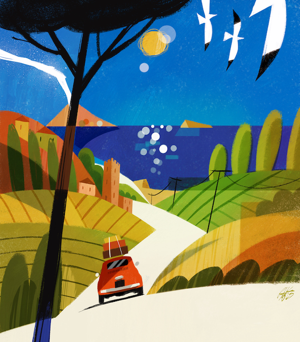 In occasione della mostra, Riccardo Guasco ha realizzato 20 illustrazioni inedite, una per regione, in cui trovano posto paesaggi, costumi e prodotti tipici; accanto ad esse presenta altre opere legate a città e marchi del Belpaese, oltre al poetico video animato Italian way. La sua produzione entra in risonanza e in dialogo con i diversi materiali conservati nell’archivio del Museo della Figurina come, ad esempio, le etichette d’albergo ormai cadute in disuso e nate nell’Ottocento al fine di attaccarle ai bagagli dei viaggiatori dapprima per motivi pratici, per rintracciare la stazione o il porto di arrivo o evitare scambi di baule, successivamente divenute efficace strumento pubblicistico. Oggetti che tratteggiano la storia della villeggiatura e che rispecchiano usi e costumi della società diventando un vero e proprio status symbol per la classe borghese dell’epoca che, esibendoli, dimostrava di potersi permettere spostamenti e soggiorni costosi in hotel.