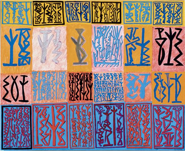 La mostra ripercorre oltre 50 anni di attività del Maestro, attraverso un’ottantina di dipinti di vari periodi dal 1950 ad oggi, una decina di sculture (monumentali in legno, medie di bronzo, di ceramica di Castellamonte), arazzi, mosaici, opere grafiche, ecc. In ogni sala sarà collocato un pannello didattico, corredato da fotografie, che illustrerà le opere, il periodo e le tecniche.