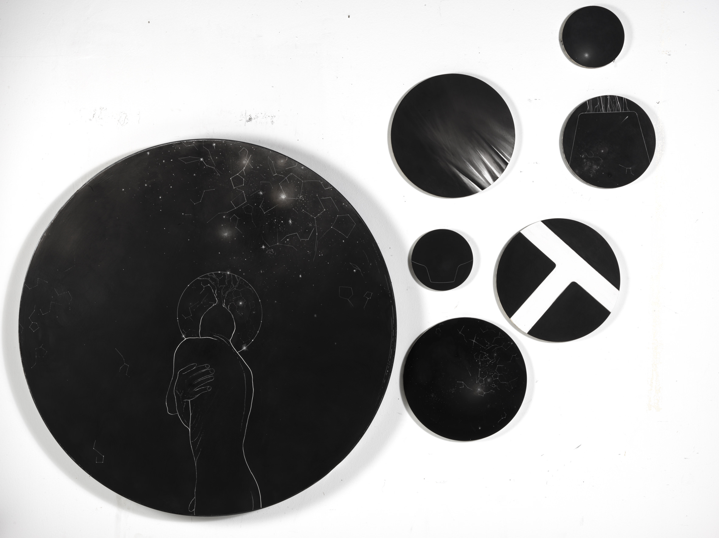 Che sia la lastra piatta di un incisore, o il calcolo astratto di un matematico, oppure, che sia lo sguardo di un navigatore antico che interroga il cielo, attendendo la direzione di una rotta, le costellazioni di Negri sembrano risalire da uno strato complesso di memorie e di culture, incerto e generoso, dove l’artista indica una direzione, in modo silenzioso e rispettoso.